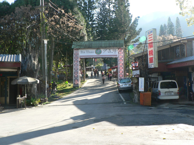101年2月12日 爬登1300公尺全隊攻頂24人車子延著日月潭到達了德化社路旁停車場 8.40 .整裝完後進入伊達邵牌樓到了水社