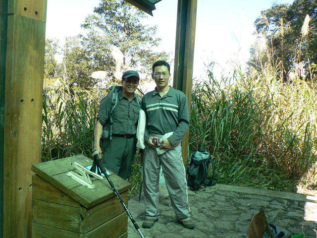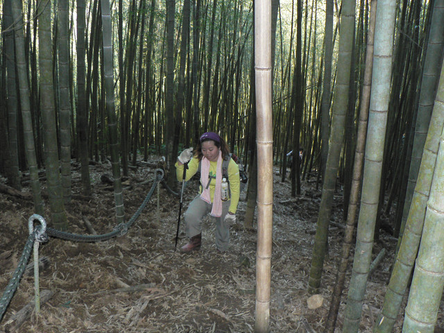 走了1800多的台階到道1.6公里的伴山亭那只是餐前小菜.由1.6K到達3.7K皆是孟宗竹林步道.有明顯的繩索指引路徑.行走