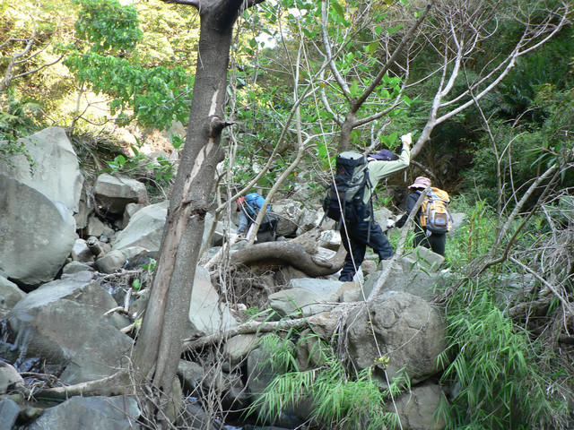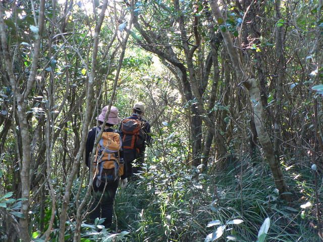 路途中竟然看到幾顆野生的柑橘樹.品嚐一下酸得令你精神大振.穿越海岸林樹叢明顯變矮可能是風大吧.由於看不見路必須戰戰競競小心通過.不久到了出風谷