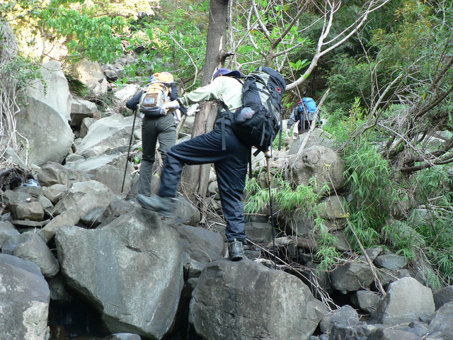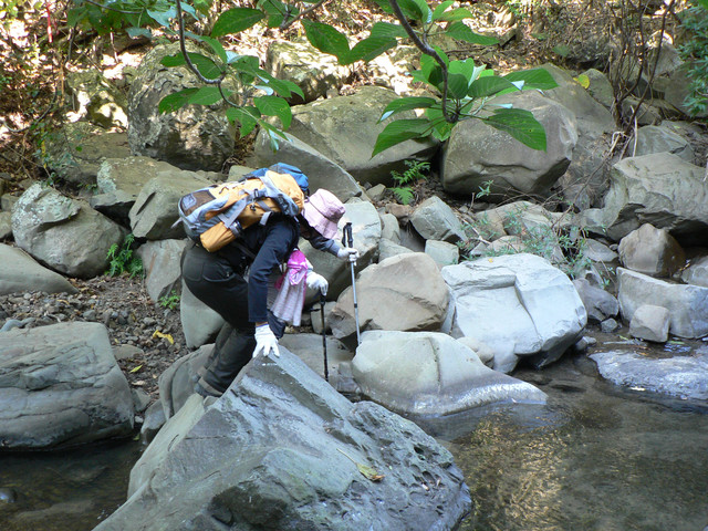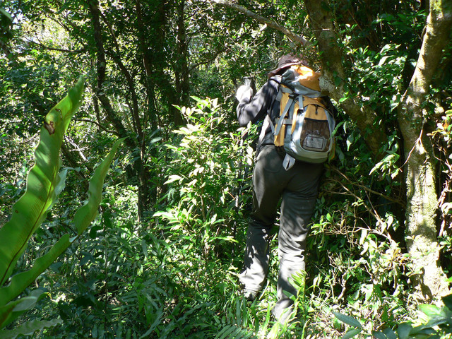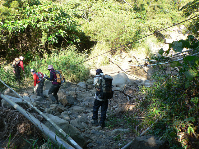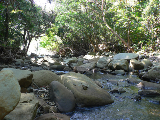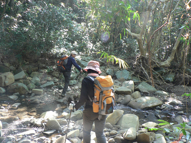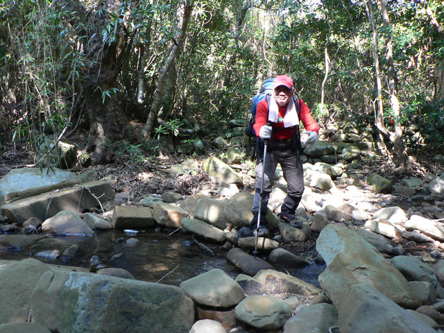 到了登山口己經7點.延著欖仁溪走了不久可見一警告牌越過了小溪即是南仁湖生態保護區有許多的自然風貌.我們在森林中前進路跡十分明顯經過了河谷小溪