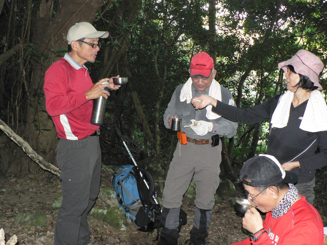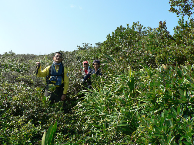 101年1月26日 大梅山清風山 27日風口縱走 夜宿 四重溪溫泉國小露營 領隊 石明哲 隊員;鄭錫彬 阿忠 小豬 呂老師 副總 路途 2天16小時 緣由 計劃北大武因天氣不佳改此計劃輕鬆走.結果也不輕鬆 26日5點由台南出發由199線到四重溪左轉經温泉國小的大梅路直往齊天宮.8點15分整裝出發.沿著左側的登山口而上.可見一條條的水管.水源十分充沛隨著水管路到了大梅溪.由於登山小徑因為88風災中斷幾番折轉最後退回河谷往上游前進.抬頭一看盡是大榕樹有的是整片的一樹成林.由於88風災以來較少人行走.路標不明倒木甚多.更要注意有剌植物.11點15分到了大梅山三角點.12點到清風山三角點.這裡因鄰海風很大而得名吧.休息30分後原路折返.回到齊天宮己3點50分.添了油香錢.車子開往四重溪溫泉國小紮營泡溫泉隔天5點多驅車往滿洲鄉於200公路14十30K右轉秀林路於欖仁路再左轉
