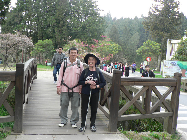 值櫻花盛開.今天南青登山隊出了兩輛遊覽車[當然尚有人向隅]在8:30直達阿里山森林遊樂區.下了車子大約有一