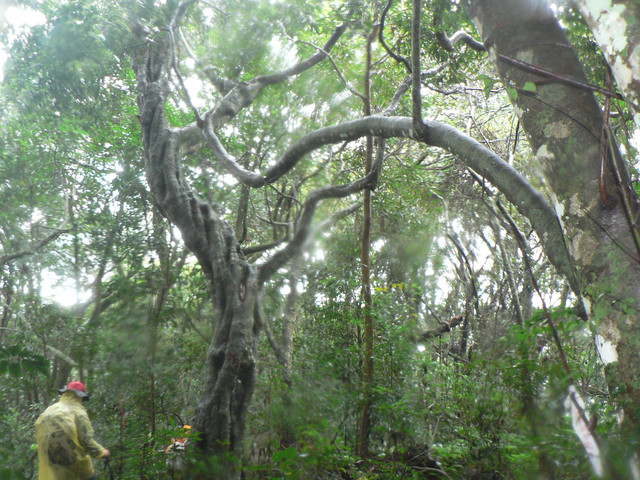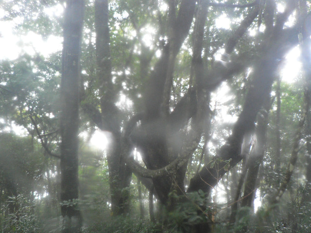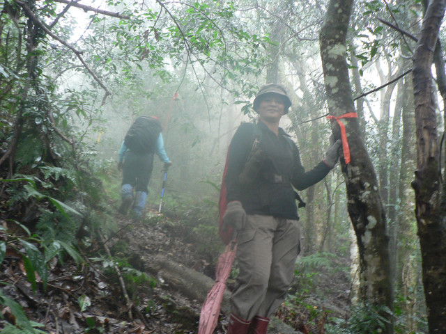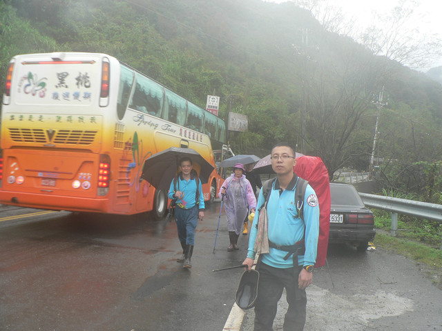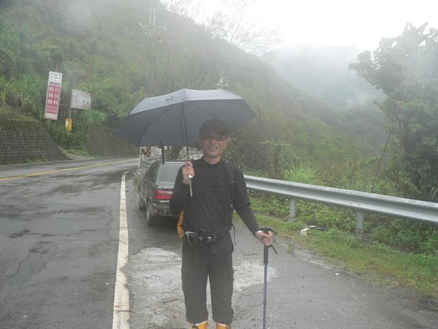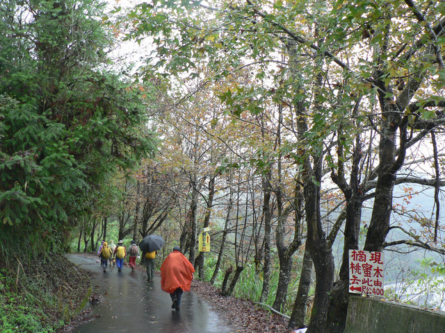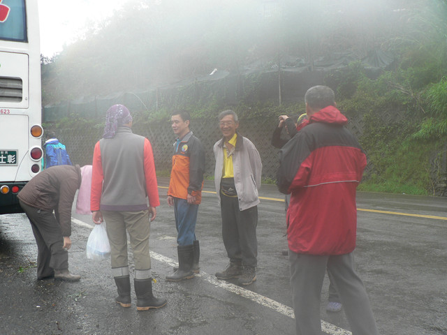 101年12月9日提早一小時古坑武令山,林相很原始,落葉像地毯,山友們讚不絕口,無意中發現主峰更有獨特的路徑,是一路緩慢上坡非常舒服清爽,步道可見原住民獵宴,相當懷古行程,早上台南是陰天而車子往南投霧社前進天氣時陰時雨.想到氣象局說全台有雨.心中有點忐忑不安.果然埔里一帶綿綿細雨.遊覽車在14號公路行往盧山方向─ 84.6k右邊叉路停車時間已8點.穿上了雨衣準備來個[武令主峰雨中行]. 我們一群登山客右下產業道路經德魯灣紅色鐵橋上水泥路在松林農場內的登山口開始攀爬.首先面對的是陡上的急升坡加上天雨路滑.走到電塔已有些人要回去泡湯.繼續前進.經過獵寮上了崚線.雨勢愈來愈大氣溫度愈來愈冷.所以決定中止前進在11點半下山.下山時因時間充足.緩步慢行.感覺其實下雨也是美.林中草木更加鮮明.空氣更加清新.而霧中更有濛濛的美在2點半回到車上.而我們有十幾位勇士不畏風雨上了三角點.在車上泡湯者說一間湯屋100元.又不必帶泳衣.真是俗又大碗.有時間真想試試.