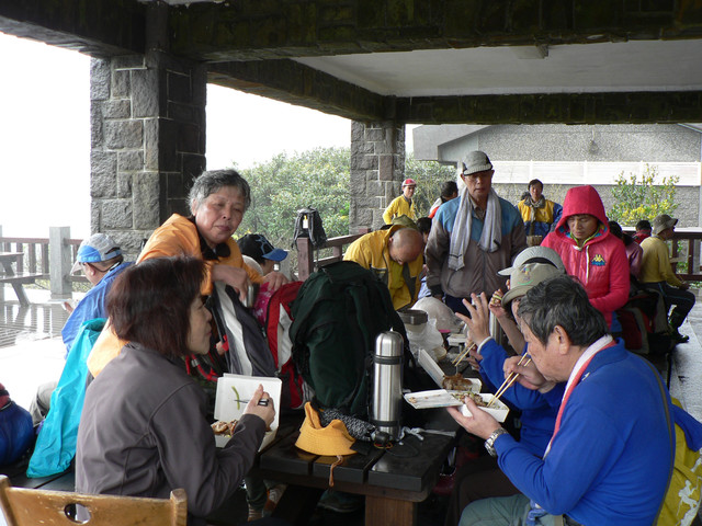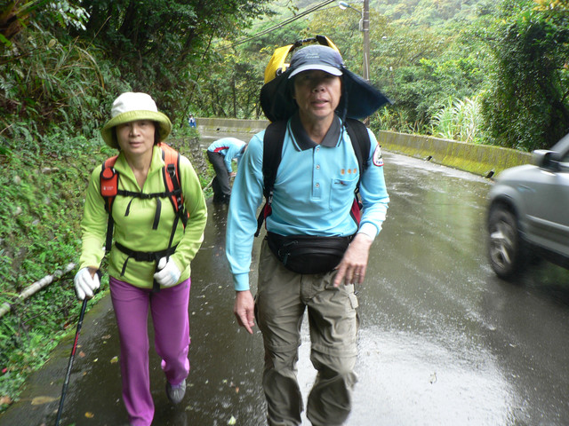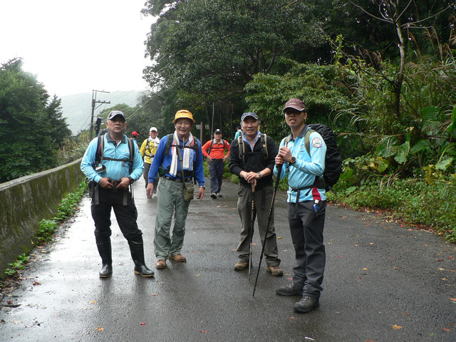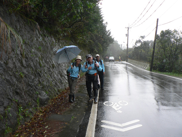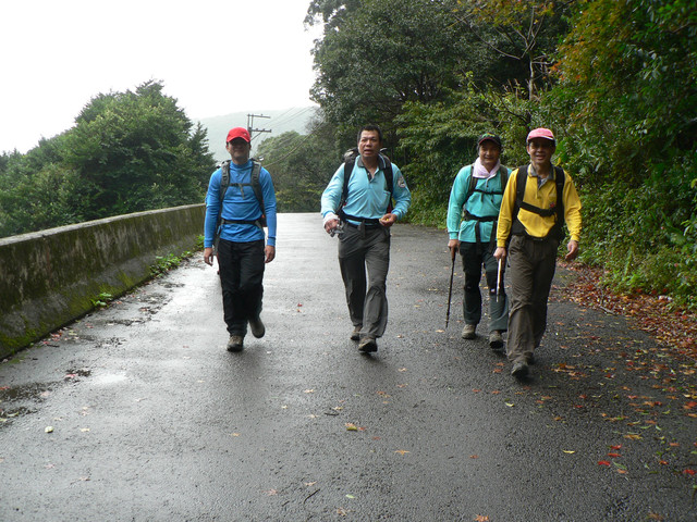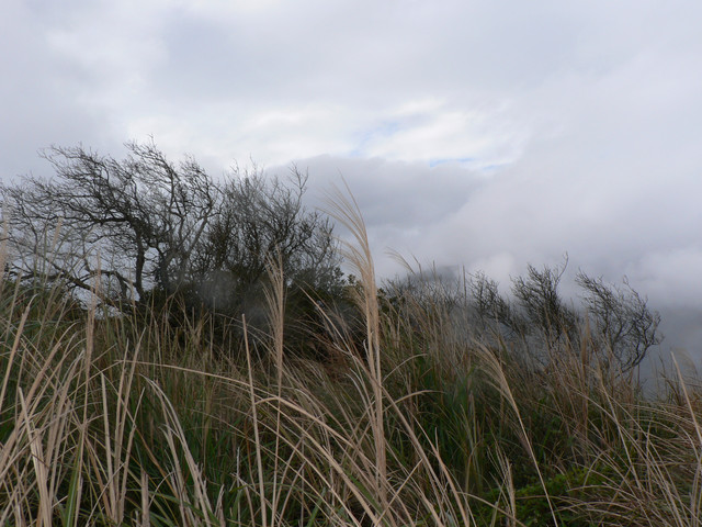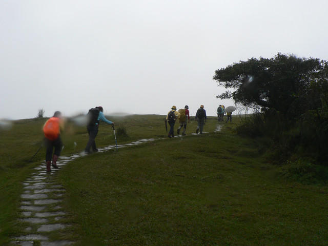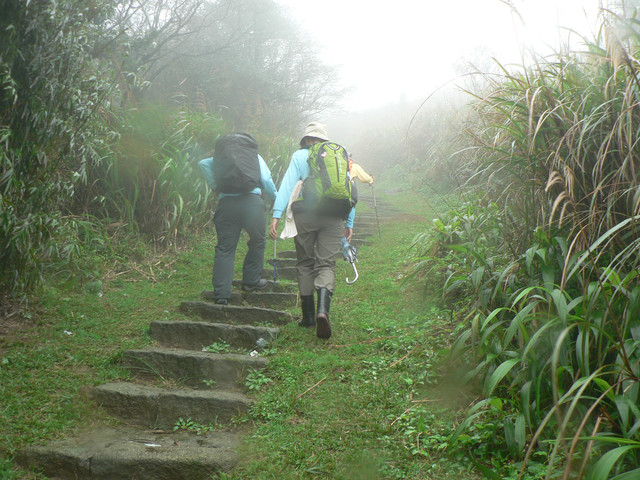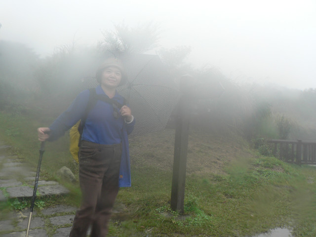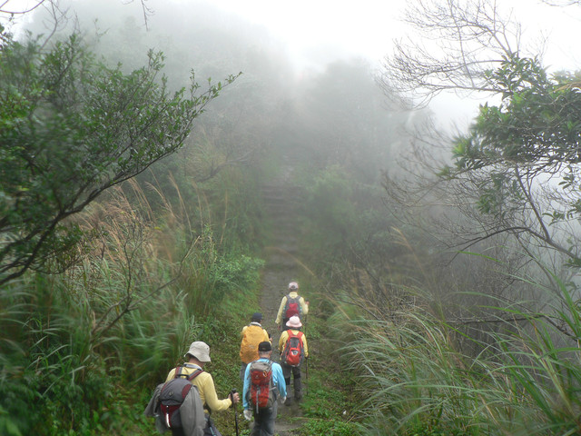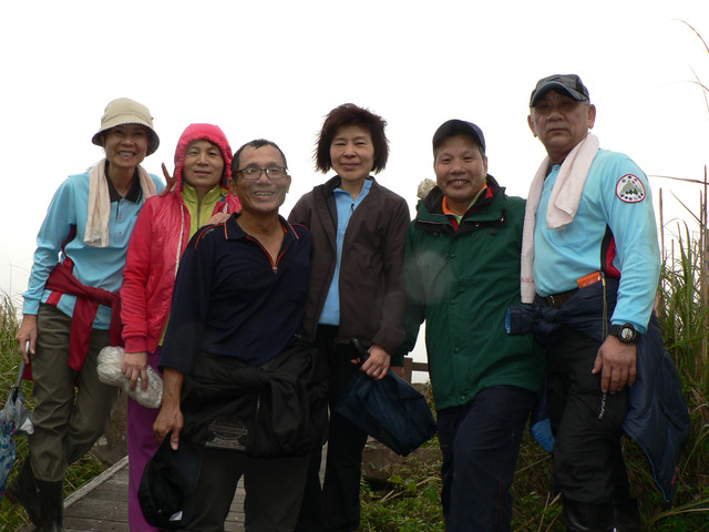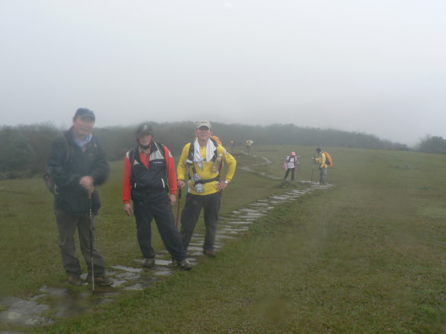 102年1月6日汐止風櫃嘴步道自風櫃口至擎天崗單程6.1公里,是一條景色優美老少咸宜的路線,隨著四時變化呈現出不同的風貌,秋末冬初走在稜線步道上,可以欣賞到滿山遍野的芒花,隨著風吹草動,感染到大自然舞動的魅力,此外,在石梯坪上更有風吹草低牛群吃草景觀,讓人印象極為深刻。早上5點遊覽車由台南出發9點多到了士林聖人橋開始步行隨著道路上行至登山口.而不時看到小溪發出隆隆聲.到了登山口踏石階而上不久就下起濛濛細雨.而上了大草原也是濛濛著視野很差偶而步道上偶而有大坨[牛黃金].經過樹林有段小溪伴隨步道十分輕爽.延著石階到了冷水坑己經是下午1點.我們接受了張祈福先生提供的便當在服務中心大快朵頤.張先生為慈濟師兄為人熱心.只要南青舉辦台北地區都不吝幫忙.因雨愈下愈大.只有七人上七星山.其餘接受張先生提議到紗帽山走1.2公里的步道.最重要的是那邊沒下雨
