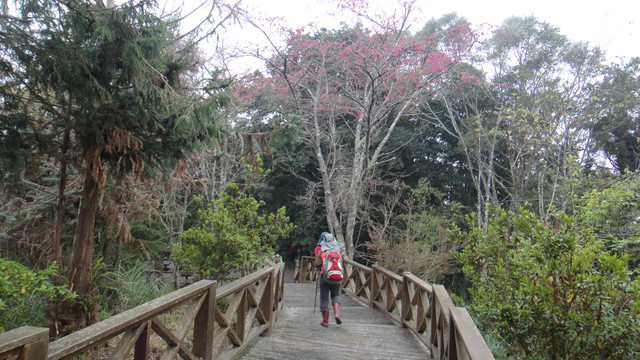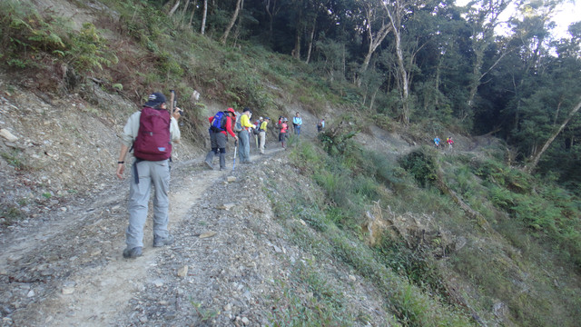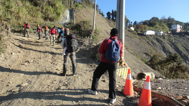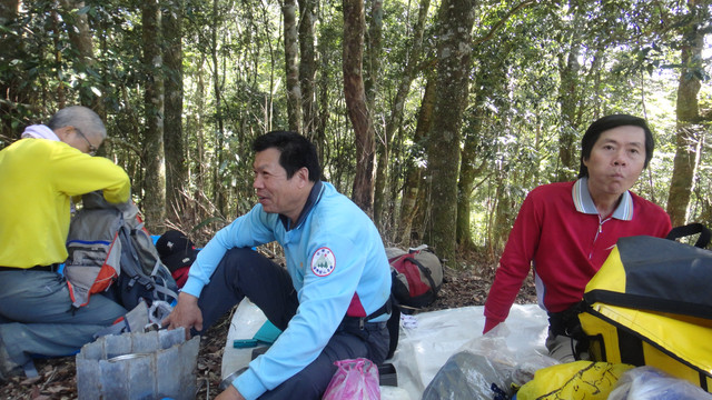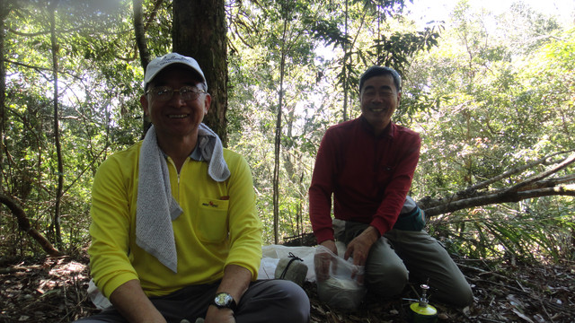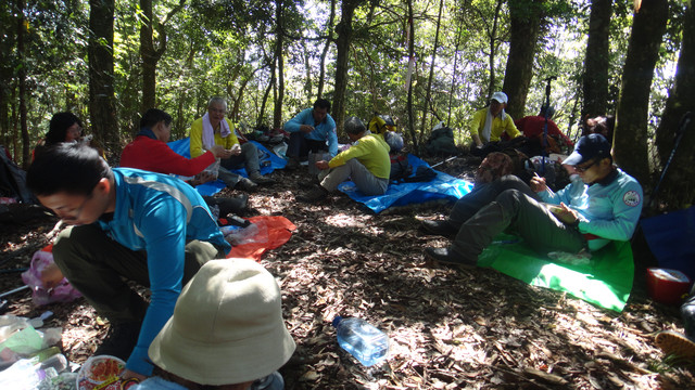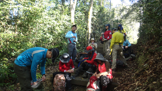 102年2月17日 由於松鶴部落走八仙山取消 我們這群爬山愛好者 由石先生登高一呼.結果召集了五輛車共20人.5點在夏林路全家便利商店集合.後直奔茂林六龜轉入藤枝森林遊樂區.但在遊樂區前17K處道路崩塌我們只能由始起登.走了2K半到藤枝森林遊樂區無奈休園不能進入.我們只好延林道後左轉入園區東藤枝山瞭望臺[1849M]在此休息15分繼續延著西施花步道前進高高低低走了2小時經過大水桶才到溪南前峰 出發7:30 瞭望台9:30分 溪南前峰11:30 回程12:20 瞭望台2:15分 停車處3點