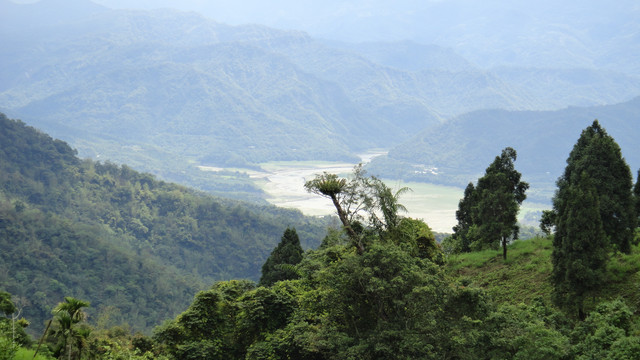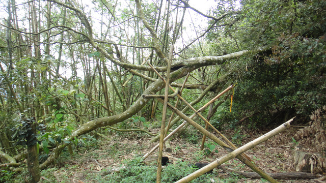 102年4月28日 上星期日南青石先生等5人來探勘大凍山走曾文水庫.今日由蔡老大提議走一次[大凍山走石面桶往返]以重温他那七0年代的舊夢.早上6點台南出發7:40點到登山口.9:10上大凍山叉路取左側林道.三十分鐘的腳程(3k)至大埔南寮18號民宅延著登山綁條經林務局肖楠造林地.此地區是本行程的精華.這裡將檳榔樹改植肖楠.十分漂亮值得一遊.後穿越荒廢坍方的產業道路後(6K)可至大埔鄉石面桶.時間為11:30在此可見曾文水庫.我們前進到此開始回返大凍山.回到停車場已4點了