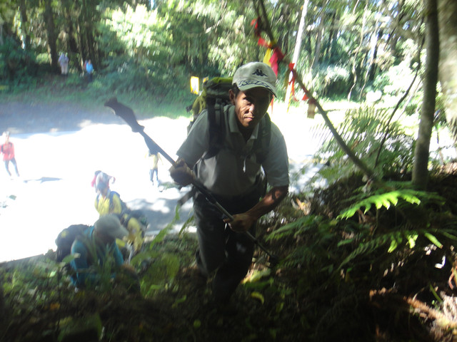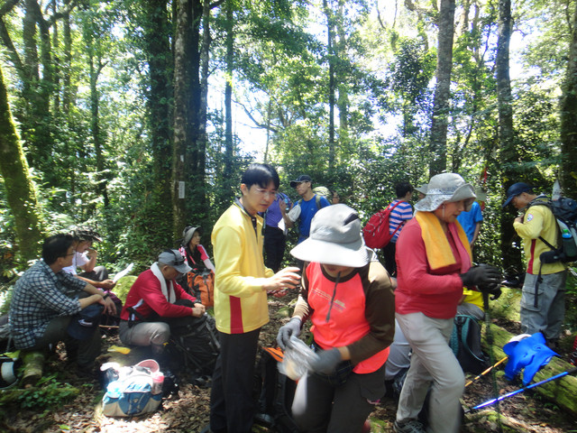 102年6月2日 凸龜山登山口,位於阿里山公路,台18線約74公里處 前有踏脚基石.標高1746公尺,無基點無視野。早上8點40開始攀爬一路盡是人工杉木在9點10分到凸龜山後左轉往下切60公尺至鞍部後上爬升340公尺到芙蓉山平台距離約1900公尺.到芙蓉山時間為10點30分後轉回芙蓉山平台.往大崠山前進在中午12點至大崠山前產業道路工寮午餐.13時20上大凍山.下大凍山時13:43分發生地震6.3級.還好人員平安.14:00上霹靂山.下午3點頂湖收隊[凸龜山1746m芙蓉山1967m大崠山1976m