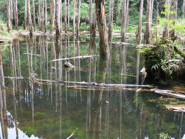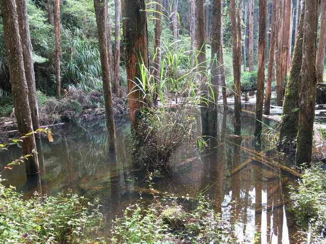 102年7月21日‧ 經過上星期蘇力颱風的肆虐.路徑上多鋪上綠色松針.而忘憂林滿滿的水位.更增加了人潮.而松隴岩的瀑布河道水流更壯觀.此處真是盛夏的避暑的聖地.8:20出發 9:20忘憂林 11點金柑樹山 12點大平台 14:00松隴岩 15:10回停車場