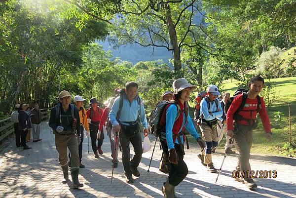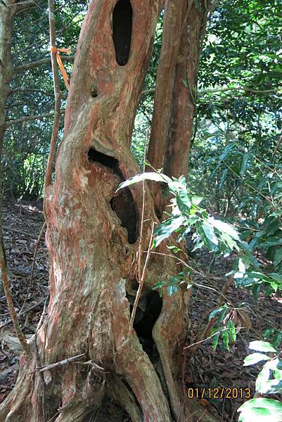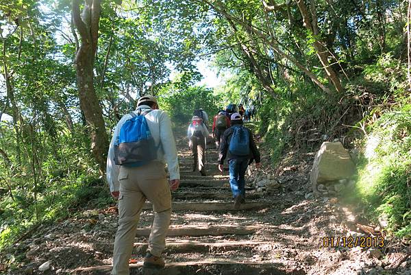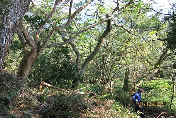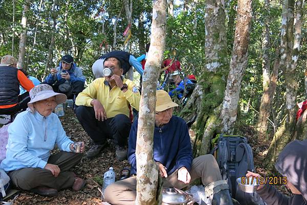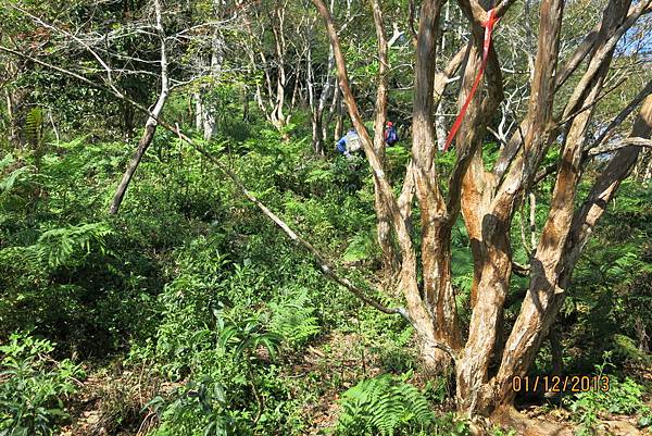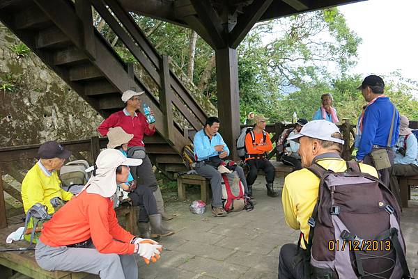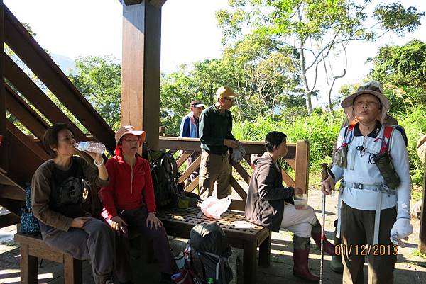 102年12月1日今日提早2小時出發.遊覽車經南迴延台9線到達知本森林遊樂區己8點10分.購票入園往森林浴步道轉好漢坡上H500的觀海亭.時間為0930稍作休息.10點由觀海亭上側往見晴山爬升.路上有九芎樹.巨滕以及己變色的楓槭.再上則為新生代的雜木林不久後越過荒廢的林道在11點20分到達見睛山H955.12點30分回返.下午3點上遊覽車.0350到台灣牛牛肉店吃晚餐