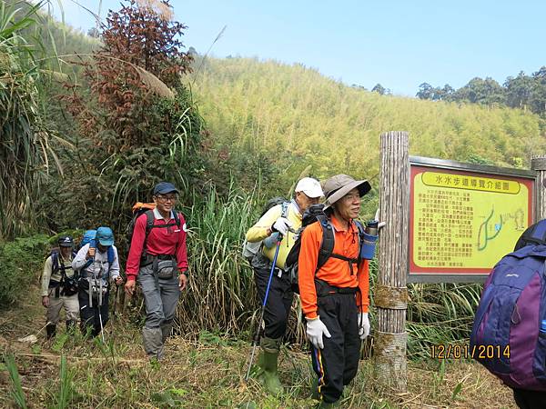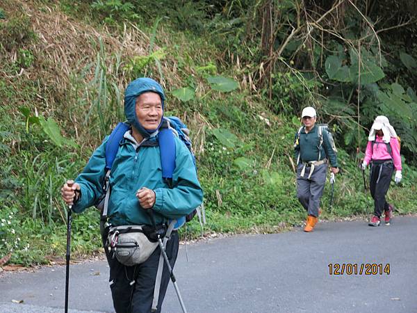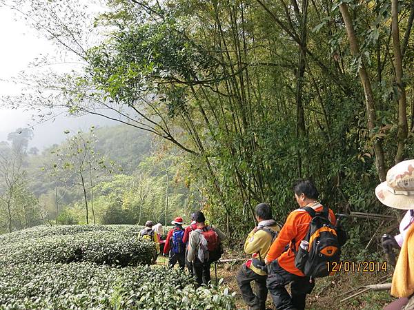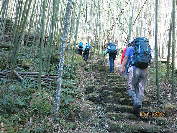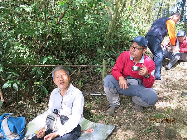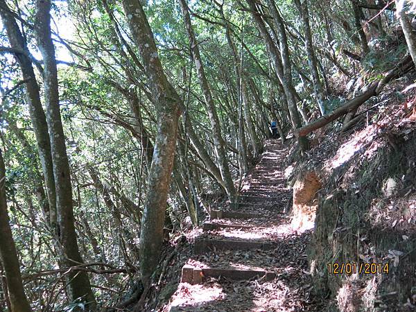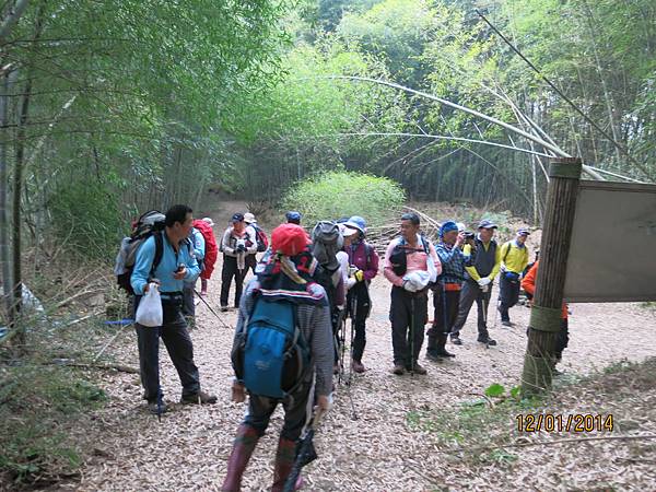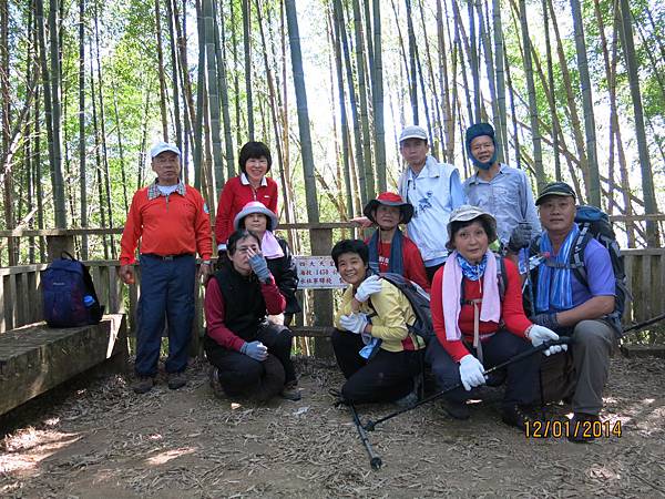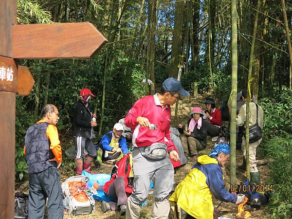 104年1月12日 500元 1458m 提早30分鐘雲潭瀑布群平面停車場下車起登,前3公里是緩坡到達鐵路登山口,開始進入竹林,遇叉路右直上知鳥山經稜線鞍部下知鳥山木造平台,再沿稜線步道下到有風(有展望)