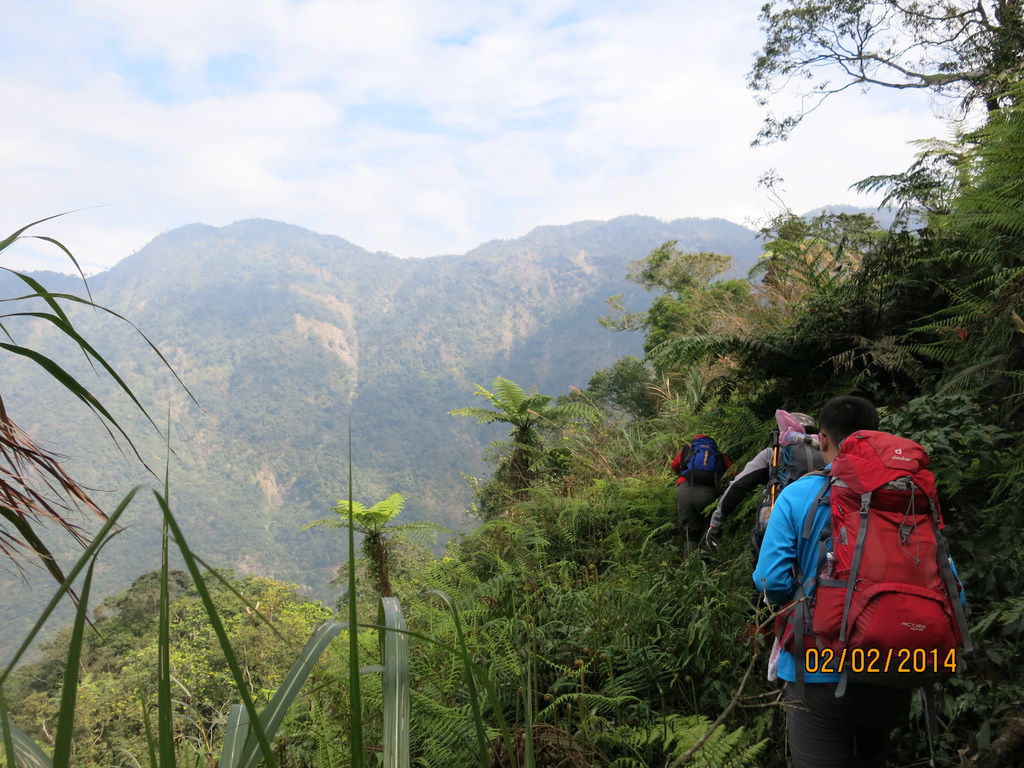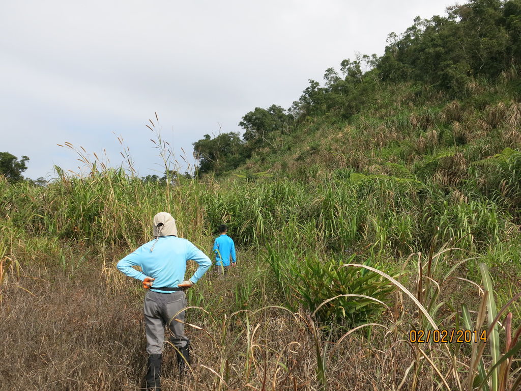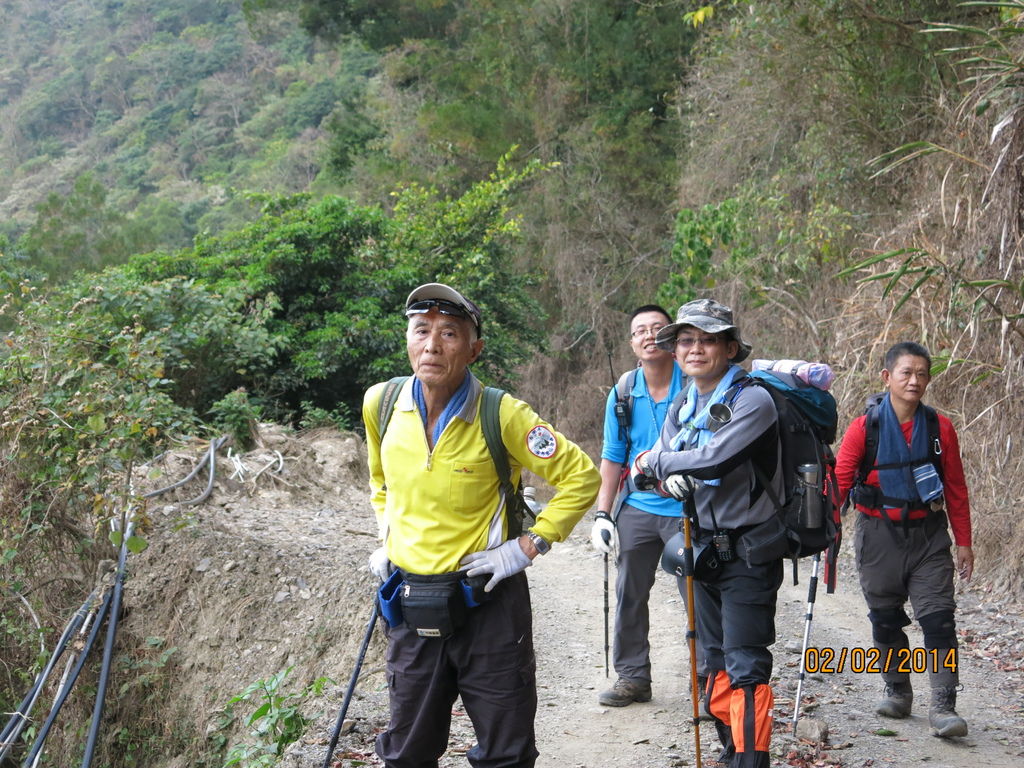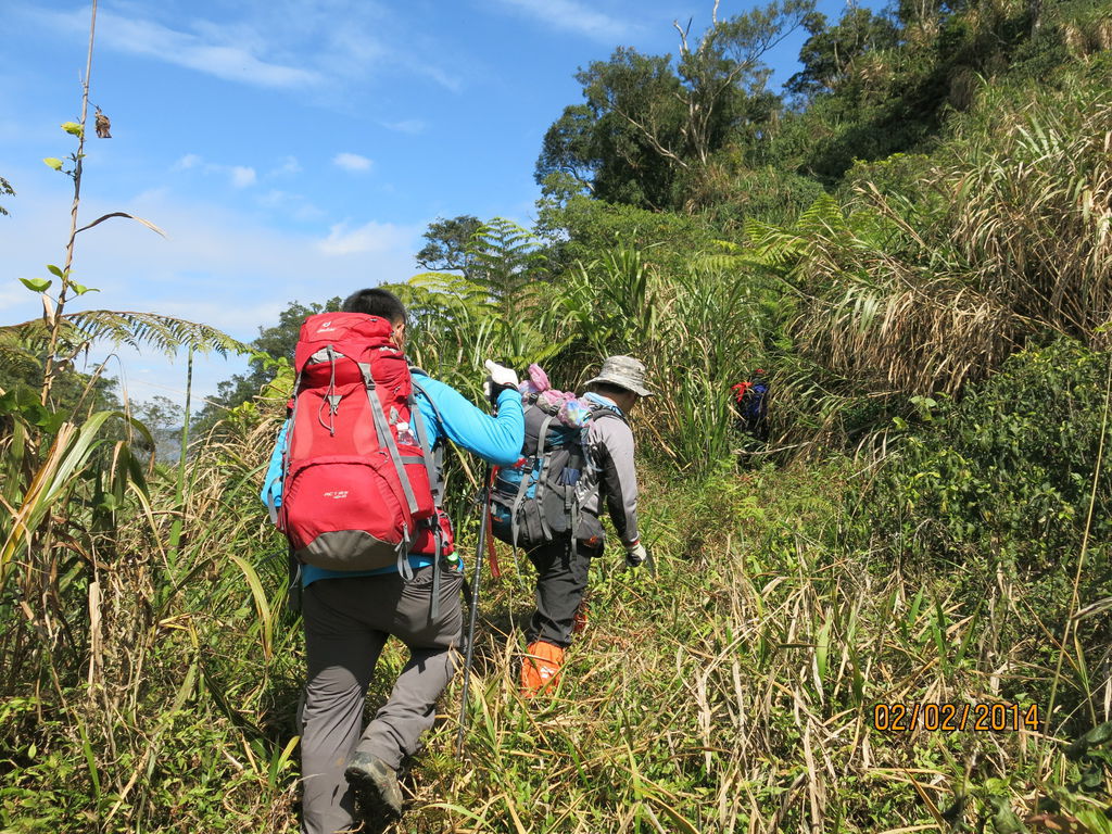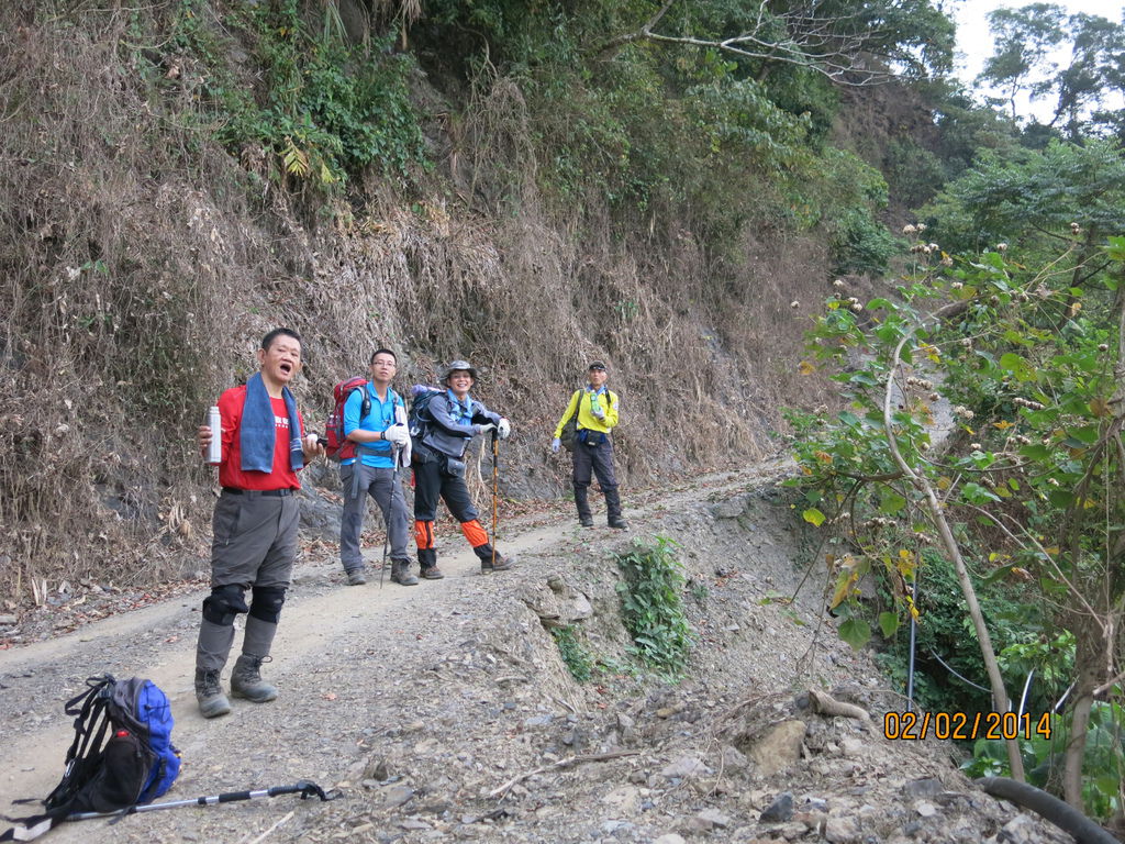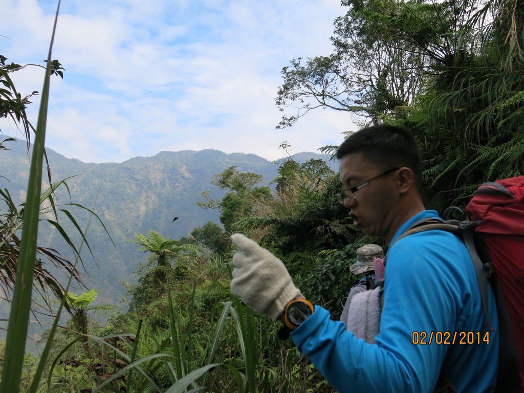 20140202兩台車子在am0730到達屏東萬安林道3k處(H200M)處停車後開始延著林道緩緩而上.這是石明哲與張忠孝前輩一段銘心的記憶.他們由佳義小學起登上真笠山.葉根山在往日湯真山途中右下山徑連接萬安林道到萬安.5年了讓他們緬懷的山徑是否無恙.今日石先生將帶領我們重回他的舊夢.走了3小時多.11點到達林道終點也是廢棄蘭花園平台但找不到連接葉根到日湯真的山徑.只是一大片比人高的芒草.石先生.simon.拿出鏈刀開路好不容易才找到路.鑽出來要帶我們過去.路又不見了.最後被忠孝前輩找到.在芒草陣中.真的.分不出東南西北.花1小時多才接上山徑.但此山徑少有人走己成獸徑而一旁是斷崖走起來+分危險.到了下午1點10分休息午餐.見時間不早如繼續前進回來恐怕摸黑.雖然離日湯真與葉根的三叉路只剩1000公尺也只好回頭了.回到蘭花園已pm0310我們順爬亞麻灣山.但也找不到登山口.問當地人結果得到錯誤信息.用鏈刀開了1小時的路才接上路徑.時間不足差400公尺就登頂而回航.而下登山口卻只用了15分.也就是說上山多走1小時.而回到停車處天已黑了.雖然兩處行程都沒有走完.但連接葉根到日湯真的山徑+分原始像蠻荒世界.蕨類叢生而且視野廣大.我認為爬山過程比登頂重要.而當然登頂就是一項自我挑戰的完成.感謝大家讓我有美好的一天