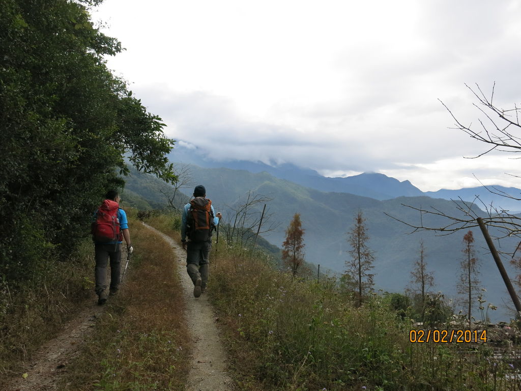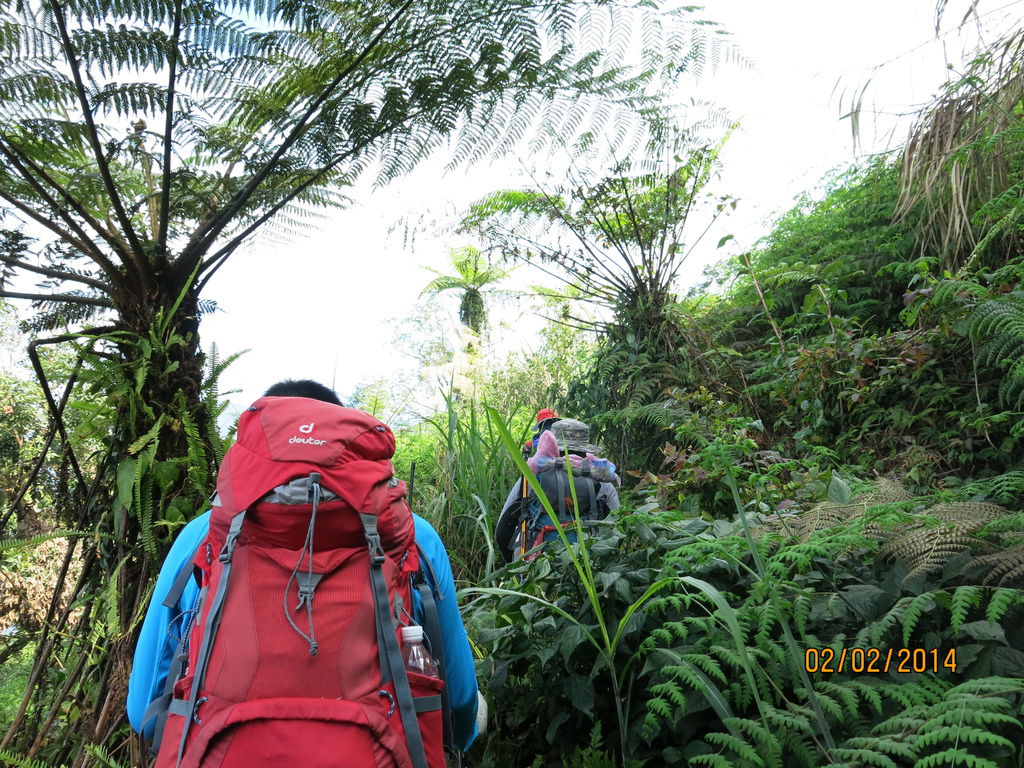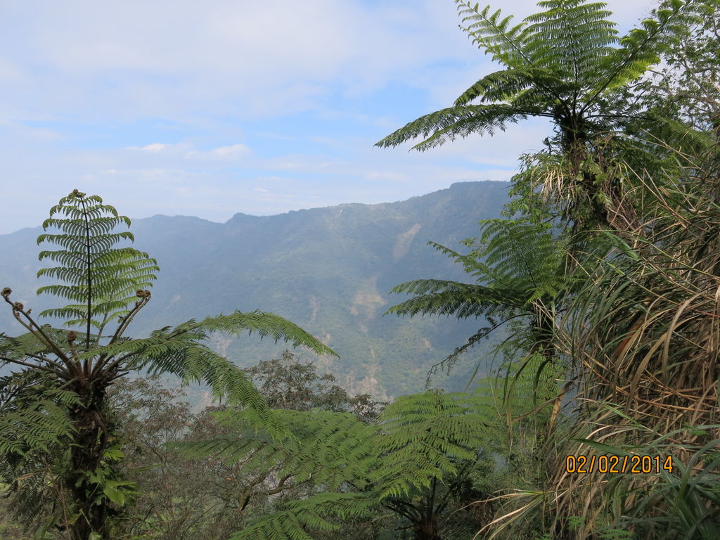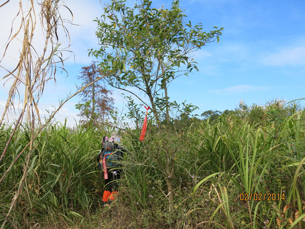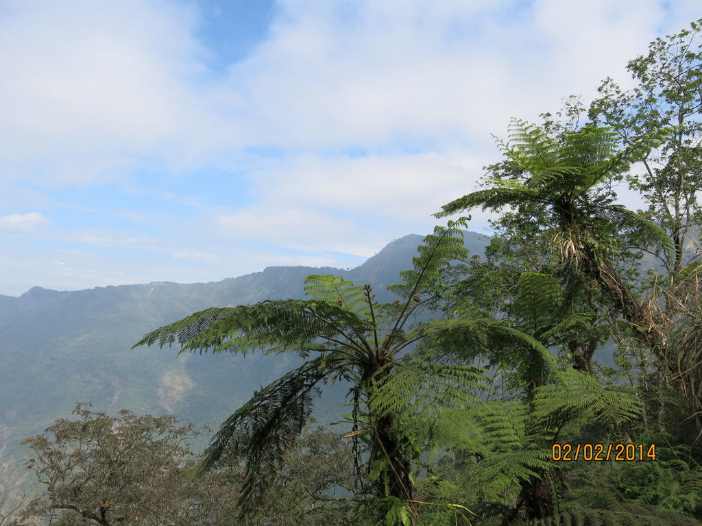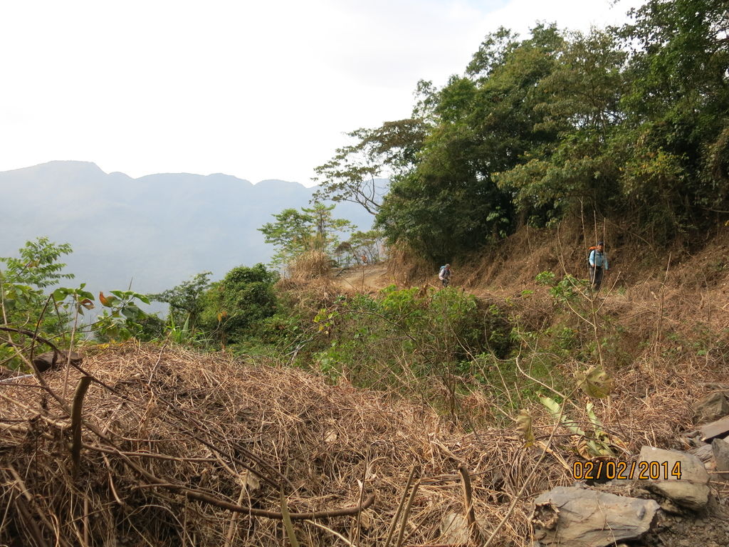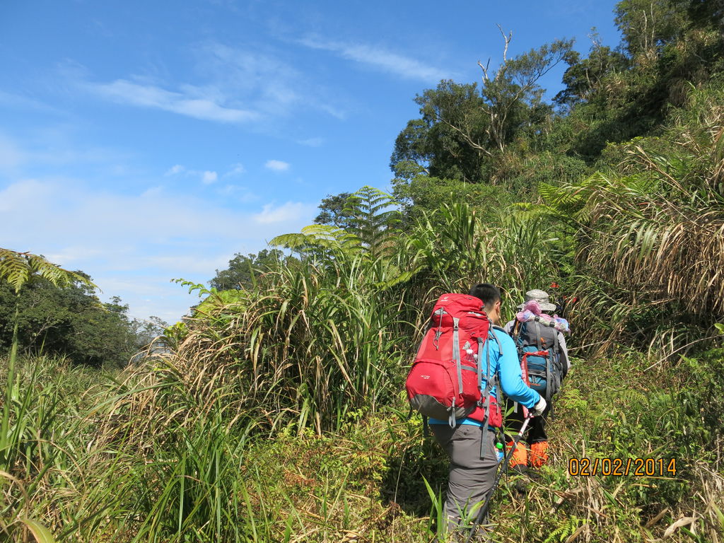 20140202兩台車子在am0730到達屏東萬安林道3k處(H200M)處停車後開始延著林道緩緩而上.這是石明哲與張忠孝前輩一段銘心的記憶.他們由佳義小學起登上真笠山.葉根山在往日湯真山途中右下山徑連接萬安林道到萬安.5年了讓他們緬懷的山徑是否無恙.今日石先生將帶領我們重回他的舊夢.走了3小時多.11點到達林道終點也是廢棄蘭花園平台但找不到連接葉根到日湯真的山徑.只是一大片比人高的芒草.石先生.simon.拿出鏈刀開路好不容易才找到路.鑽出來要帶我們過去.路又不見了.最後被忠孝前輩找到.在芒草陣中.真的.分不出東南西北.花1小時多才接上山徑.但此山徑少有人走己成獸徑而一旁是斷崖走起來+分危險.到了下午1點10分休息午餐.見時間不早如繼續前進回來恐怕摸黑.雖然離日湯真與葉根的三叉路只剩1000公尺也只好回頭了.回到蘭花園已pm0310我們順爬亞麻灣山.但也找不到登山口.問當地人結果得到錯誤信息.用鏈刀開了1小時的路才接上路徑.時間不足差400公尺就登頂而回航.而下登山口卻只用了15分.也就是說上山多走1小時.而回到停車處天已黑了.雖然兩處行程都沒有走完.但連接葉根到日湯真的山徑+分原始像蠻荒世界.蕨類叢生而且視野廣大.我認為爬山過程比登頂重要.而當然登頂就是一項自我挑戰的完成.感謝大家讓我有美好的一天