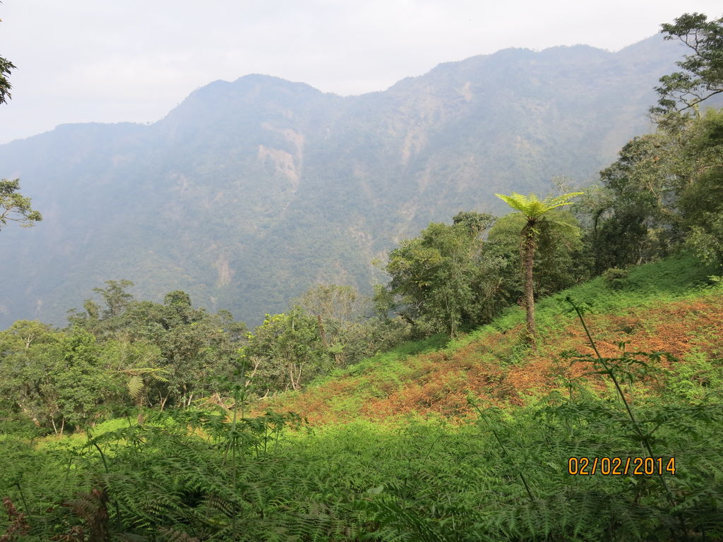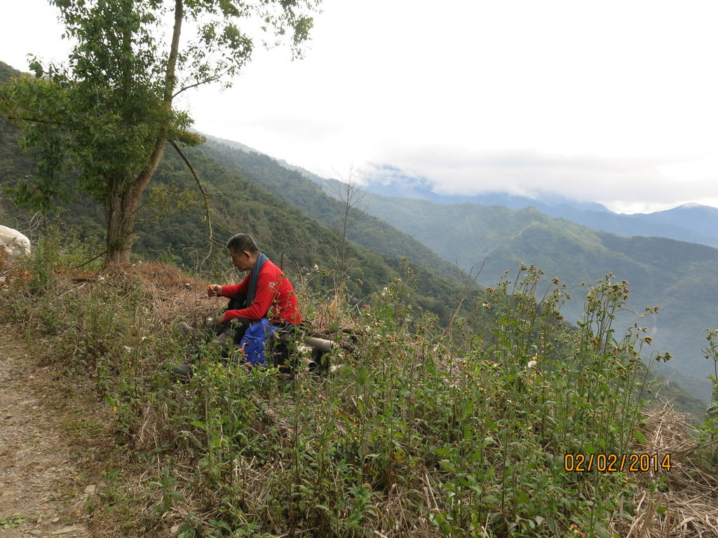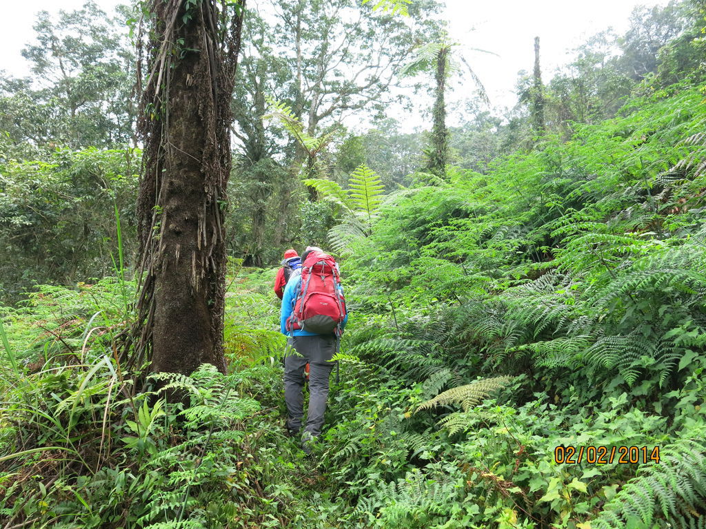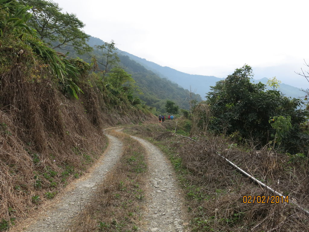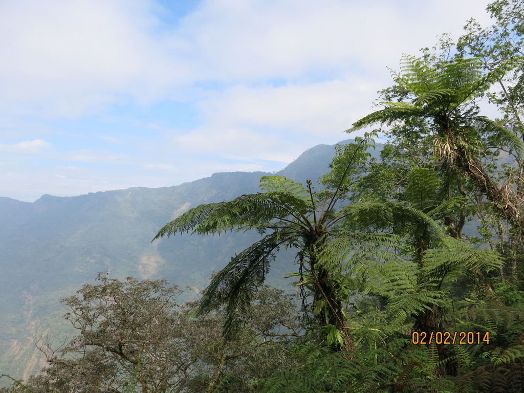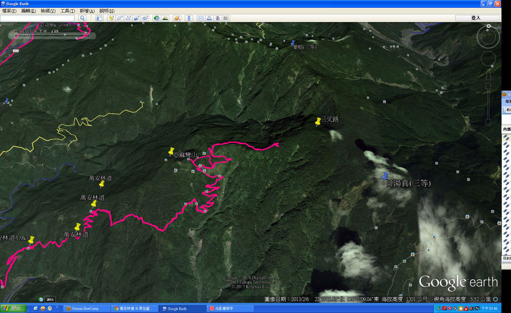 20140202兩台車子在am0730到達屏東萬安林道3k處(H200M)處停車後開始延著林道緩緩而上.這是石明哲與張忠孝前輩一段銘心的記憶.他們由佳義小學起登上真笠山.葉根山在往日湯真山途中右下山徑連接萬安林道到萬安.5年了讓他們緬懷的山徑是否無恙.今日石先生將帶領我們重回他的舊夢.走了3小時多.11點到達林道終點也是廢棄蘭花園平台但找不到連接葉根到日湯真的山徑.只是一大片比人高的芒草.石先生.simon.拿出鏈刀開路好不容易才找到路.鑽出來要帶我們過去.路又不見了.最後被忠孝前輩找到.在芒草陣中.真的.分不出東南西北.花1小時多才接上山徑.但此山徑少有人走己成獸徑而一旁是斷崖走起來+分危險.到了下午1點10分休息午餐.見時間不早如繼續前進回來恐怕摸黑.雖然離日湯真與葉根的三叉路只剩1000公尺也只好回頭了.回到蘭花園已pm0310我們順爬亞麻灣山.但也找不到登山口.問當地人結果得到錯誤信息.用鏈刀開了1小時的路才接上路徑.時間不足差400公尺就登頂而回航.而下登山口卻只用了15分.也就是說上山多走1小時.而回到停車處天已黑了.雖然兩處行程都沒有走完.但連接葉根到日湯真的山徑+分原始像蠻荒世界.蕨類叢生而且視野廣大.我認為爬山過程比登頂重要.而當然登頂就是一項自我挑戰的完成.感謝大家讓我有美好的一天