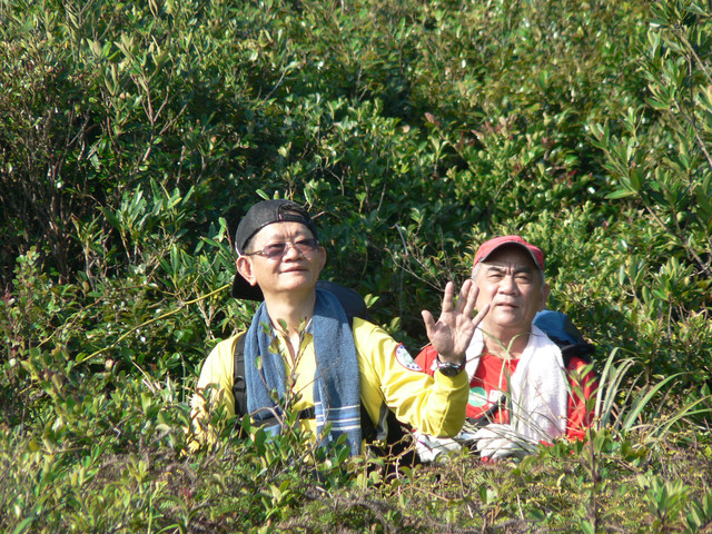 101年1月26日 大梅山清風山 27日風口縱走 夜宿 四重溪溫泉國小露營 領隊 石明哲 隊員;鄭錫彬 阿忠 小豬 呂老師 副總 路途 2天16小時 緣由 計劃北大武因天氣不佳改此計劃輕鬆走.結果也不輕鬆 26日5點由台南出發由199線到四重溪左轉經温泉國小的大梅路直往齊天宮.8點15分整裝出發.沿著左側的登山口而上.可見一條條的水管.水源十分充沛隨著水管路到了大梅溪.由於登山小徑因為88風災中斷幾番折轉最後退回河谷往上游前進.抬頭一看盡是大榕樹有的是整片的一樹成林.由於88風災以來較少人行走.路標不明倒木甚多.更要注意有剌植物.11點15分到了大梅山三角點.12點到清風山三角點.這裡因鄰海風很大而得名吧.休息30分後原路折返.回到齊天宮己3點50分.添了油香錢.車子開往四重溪溫泉國小紮營泡溫泉隔天5點多驅車往滿洲鄉於200公路14十30K右轉秀林路於欖仁路再左轉
