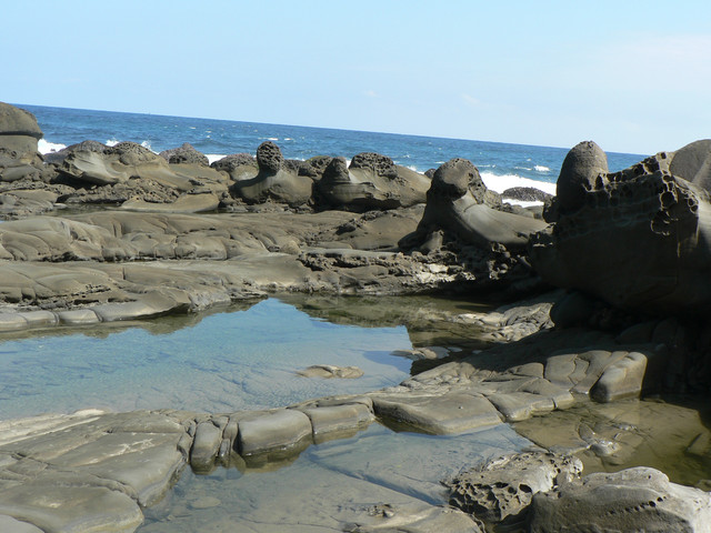 海蝕平台和巨卯石礫海岸造形十分擉特.延著海岸線往佳樂水前進.看見2萬8千噸貨輪幸福號的殘骸枝離破碎散落在海灘上到下午4點